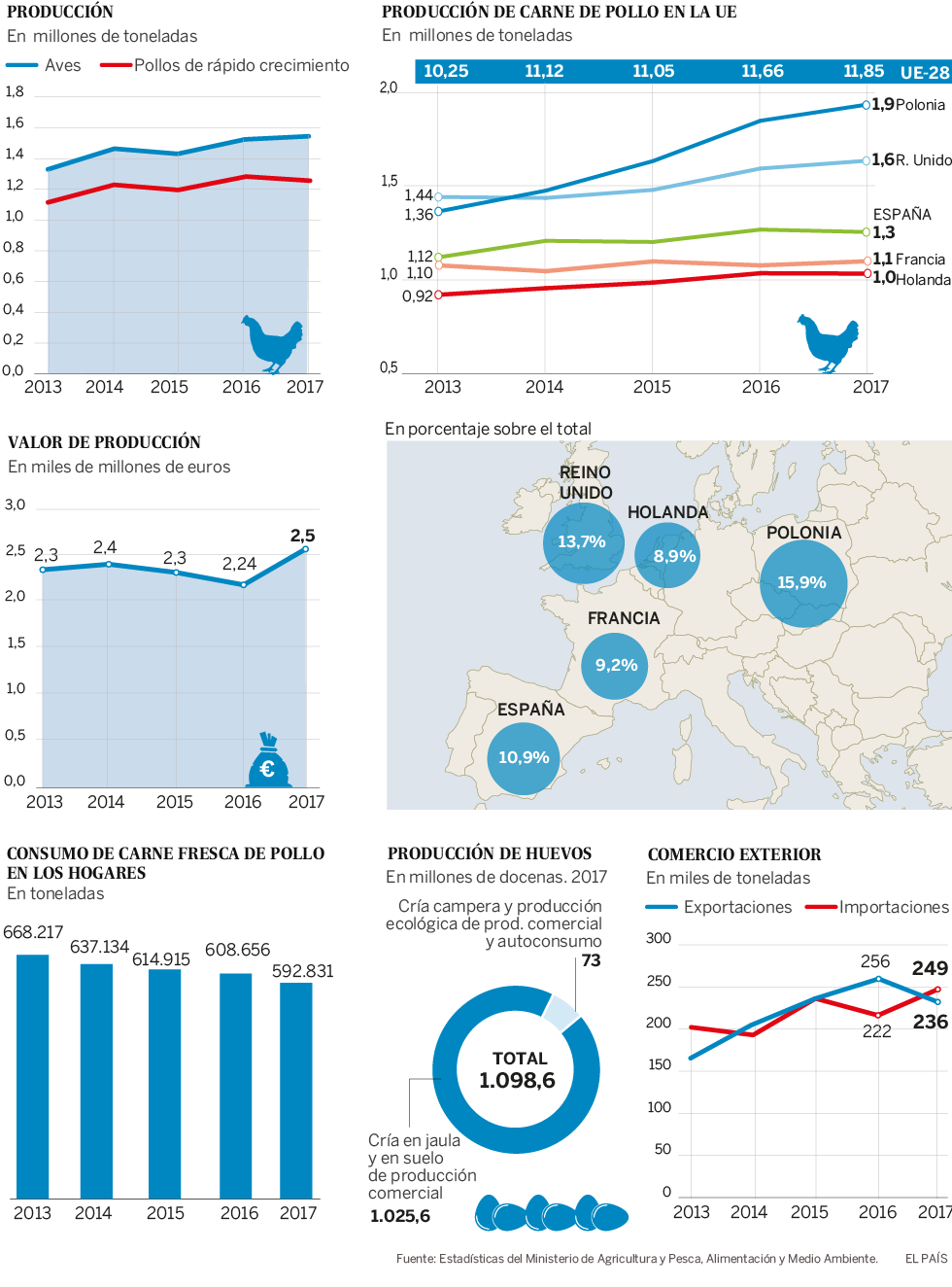 El diario generalista EL PAIS, entre los diez medios más leídos del mundo, ha publicado su artículo periódico de revisión del sector de carne de ave y de puesta en España.